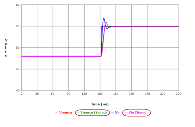 from 48V to 55V at 1V/us produces the following the results. These results can