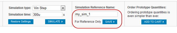 Simulations can be saved for later use by assigning a unique name to the simulation