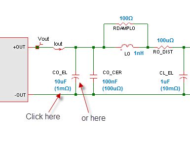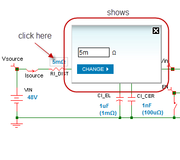 Component values on the schematic can be changed either by clicking on the component itself or by clicking on the component value: